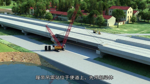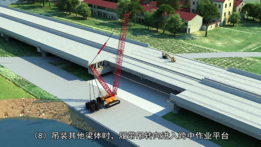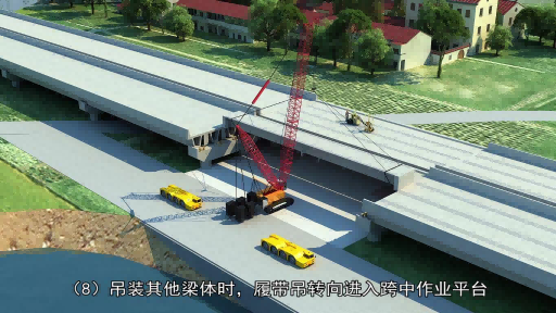 制作过程中,团队运用高精度三维建模与动态模拟技术,对履带吊作业轨迹、梁体切割应力变化等进行精细化呈现。特别是绳锯切割中横梁实现体系转换的关键步骤,以及不同梁体吊装时机械协同作业的复杂场景,都在动画中以毫米级精度完美还原。就连存梁场双层存梁的空间利用方案,也通过动画清晰展示,为施工规划提供可视化参考。
