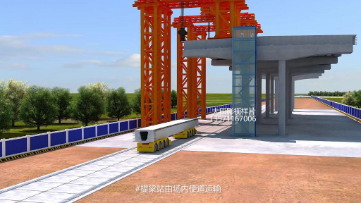 施工方法展示是动画核心内容。预制梁运输环节,两座提梁站差异化运输方案通过路线动态演示呈现:一号提梁站场内便道运输路径规划,二号提梁站社会道路加固改造的具体点位、工艺细节,均依据实地勘测数据还原。架桥机安装采用 “分解 - 组装” 式动画演示,从盖梁上横移轨道定位、支腿固定,到导梁整体吊装、天车安装,每个步骤配合施工图纸标注关键参数。“高低吊” 安装工艺通过多角度慢动作,实时显示 15 度倾角限制与平衡预警系统触发机制,保障施工安全可视化。