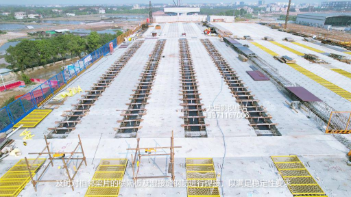 安全标准化施工在动画中贯穿始终。装配式安全梯笼的模块化组装流程、临边防护栏杆的高度与间距标准、湿接缝安全防护板的覆盖范围、横隔板施工平台的承重设计,均以三维模型结合实景拍摄展示。安全条件核查制度的执行流程,从设备进场检验到每日施工前安全确认,通过动画流程图清晰呈现,强化 “双标管理” 理念。