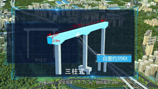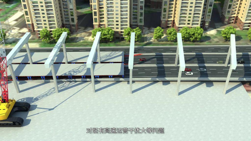 在安装方法的动画呈现上,乐之思文化创新性采用 “分步拆解 + 关键控标标注” 模式,将复杂施工流程转化为清晰的技术叙事。例如钢盖梁空中 90 度转体环节,动画不仅还原自动旋转吊具的双梁式刚性框架结构与 4 组伺服电机驱动原理(减速比 1:120),更通过动态数据标注,实时展示转体角速度(0.5°/s)、定位精度(±0.1°)及吊具球铰式万向节的倾斜补偿功能(±3° 偏差适配);过孔作业阶段,则以分屏对比形式,同步呈现前支腿 1.2m 起升高度控制、后支腿≥4000kN 支撑反力监测、中支腿双油缸 50mm/s 同步推移速度等关键参数,让观众直观理解 “单旋臂步履式前移” 工艺的技术优势。