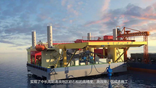 以中长周期波涌浪海域自升式碎石桩施工平台为例,这款斩获四项专利、达到国际领先水平的海洋工程装备,曾面临 “技术优势难传递” 的困境:自升式平台的抗浪原理、三套振冲设备的同步作业逻辑、毫米级定位的技术细节,仅靠文字与图片难以让客户直观感知。武汉乐之思接下动画制作需求后,并未停留于简单的 “技术复刻”,而是深入挖掘装备的核心价值与行业痛点,构建了 “问题 — 解决方案 — 实效验证” 的动画叙事逻辑。