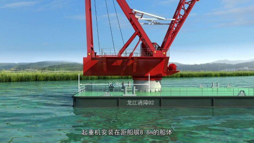 这么说吧,这船可不是普通装备。钢质单体机身,单底单甲板搭配隧道尾设计,尖艏宽扁的流线型造型,专为航道作业量身打造。56.5米长、17米宽、3.2米高的个头,航行吃水1.4米、作业吃水1.8米,能以13公里每小时的速度,续航2000公里驰骋江面——这些从解说词里抠出的精准参数,我们都实打实还原进了动画。