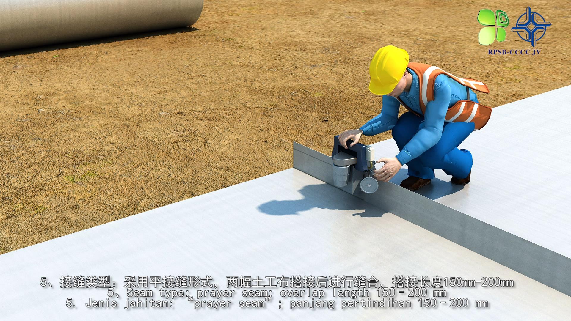 据悉,美里港导流堤及疏浚工程位于马来西亚砂拉越州美里省巴兰河河口,核心包含导流堤修建与航道疏浚等关键工序,土工布缝合作为工程防护核心环节,对施工精度要求极高。为直观呈现缝合工艺要点、规范施工流程,客户委托制作专项技术交底动画。