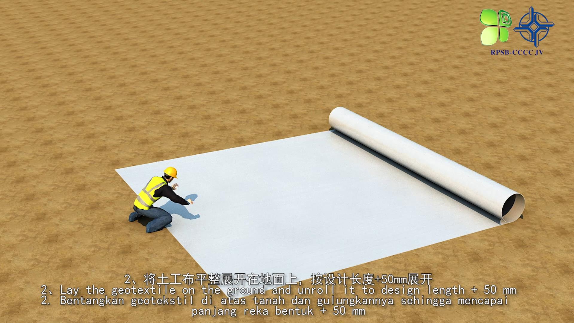 接到委托后,公司团队充分结合工程施工图纸与土工布缝合技术标准,加班加点高效推进制作,仅用两天时间便完成全部工作,交付的动画时长67秒。动画精准还原土工布缝合的操作流程、技术参数及质量控制要点,画面清晰、重点突出,有效解决传统技术交底抽象难懂的痛点,为现场施工人员提供了直观的指导依据。